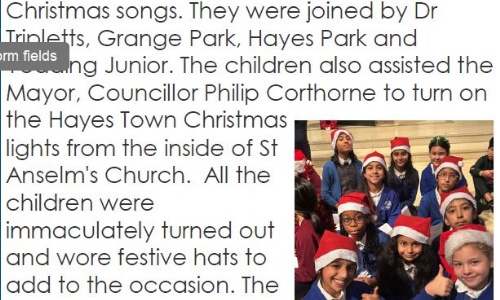 On Thursday 13th November, Mrs Taylor, Ms Page and Mrs Furzer-Pickett took our Choir to St Anselm’s Church in Hayes to sing Christmas songs. They were joined by Dr Tripletts, Grange Park, Hayes Park and Yeading Junior. The children also assiste